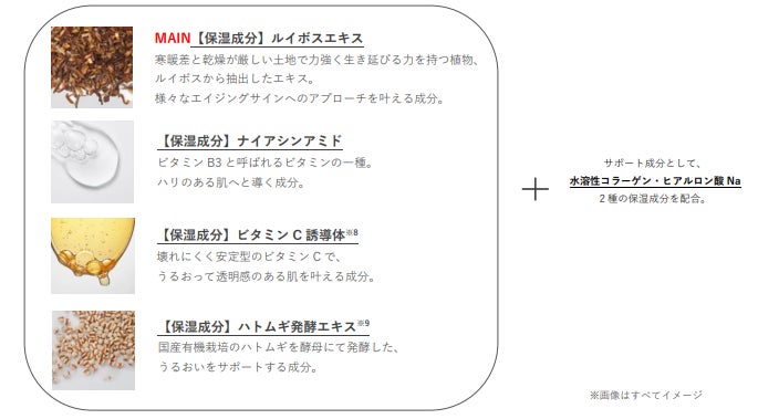 エイジングケアのための厳選成分として、ナノNCデリバーカプセル内に美容成分を配合しています。