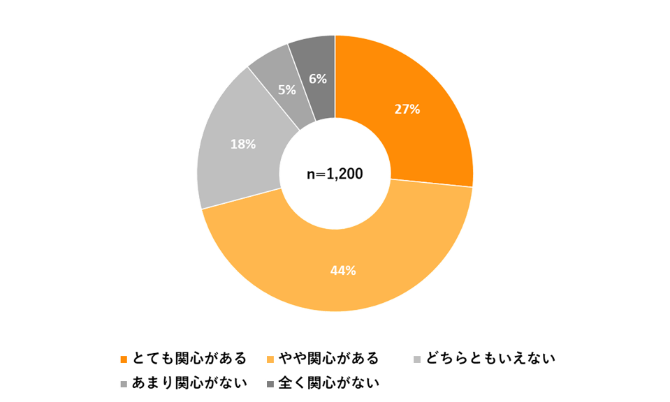 節電や節ガスに対して「とても関心がある」27%、「やや関心がある」44%となり、合わせると71%が関心を持っている。