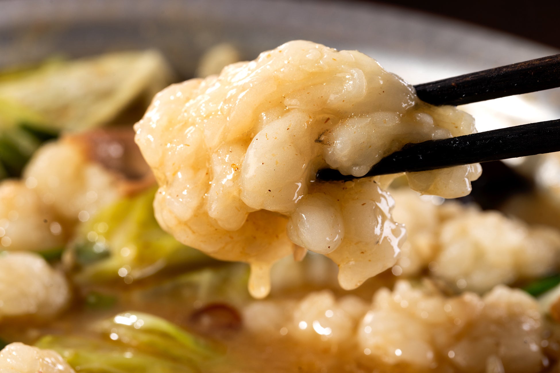 限定の「濃厚煮干しもつ鍋」はその名のとおり「煮干し」の出汁を使用。