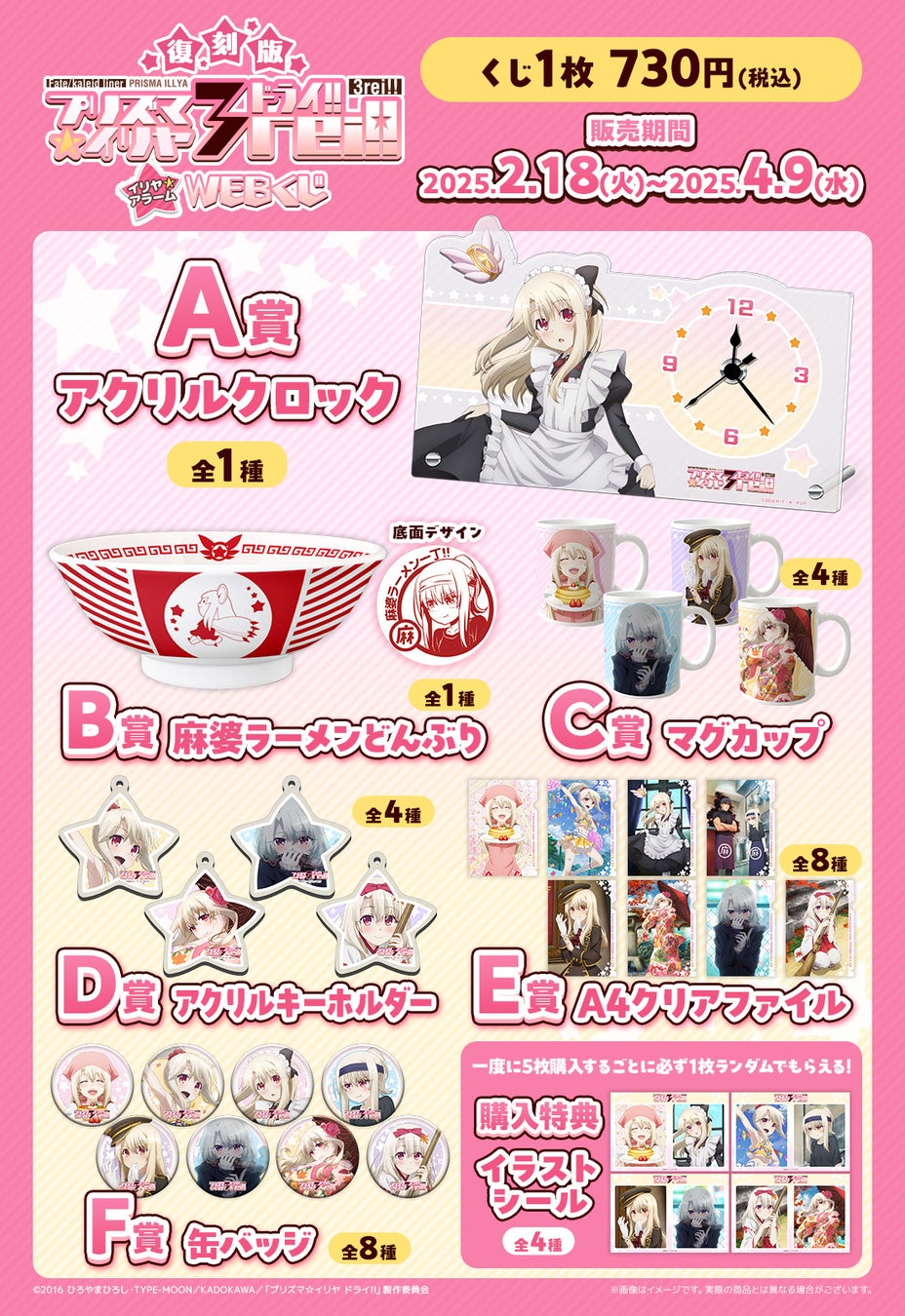 2025年2月18日(火)より、「【復刻版】Fate/kaleid liner プリズマ☆イリヤ ドライ!! イリヤ☆アラーム WEBくじ」の販売を開始いたしました。