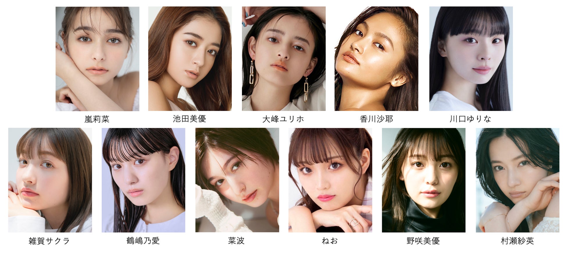 さらに、今年2023年で創刊40周年を迎え、数々のファッションブームを作ってきたViVi専属モデルから、映画初出演にして初主演に抜擢された映画『マイスモールランド』で、「2022年 第96回キネマ旬報ベスト・テン」新人女優賞を受賞するなど女優としても注目を集める嵐莉菜と、ViViスタッフからの熱いラブコールを受け、ViVi2023年10月号より専属モデルに加入した雑賀サクラ、ABEMAオリジナル恋愛番組『彼とオオカミちゃんには騙されない』出演が話題を集めた現役大学生モデル大峰ユリホ、10頭身とも呼ばれる抜群のスタイルを持つカリスマモデル香川沙耶、アジア中の注目を集めた日中韓ガールズグループオーディションに出演し、視聴者投票による初の順位発表式では446万6387票を獲得し見事1位に!(164カ国のうち、83カ国で1位を獲得)昨年2022年3月にはソロデビューを果たし、今年2023年7月にリリースされた4th デジタルシングル「C.O.S.M.I.C Love」はWeb CMの挿入歌に採用されるなど注目を集め続ける川口ゆりな、2023年1月~2月に放送されたドラマ『あなたは私におとされたい』でドラマ初主演を果たした鶴嶋乃愛らに加えて、2022年09月~2023年09月に、日本テレビ『Going! Sports&News』に「Going!バスケットボールサポーター」としてレギュラー出演し、番組内でのバスケ愛溢れるコメントが話題に!先月2023年10月には、B.LEAGUEによる、B.LEAGUEの魅力を発信することを目的にスタートした公式マガジンコンテンツ「B.MAGAZINE」編集長に就任するなど活躍の幅を広げ、CanCam専属モデルとしても人気を集める菜波、リアル姉妹インフルエンサーで、SNS総フォロワー数が430万人を超える姉のねおと妹の野咲美優、そして関西(大阪府)出身で、モデル、女優、タレントなど、マルチに活躍する村瀬紗英らが追加決定!