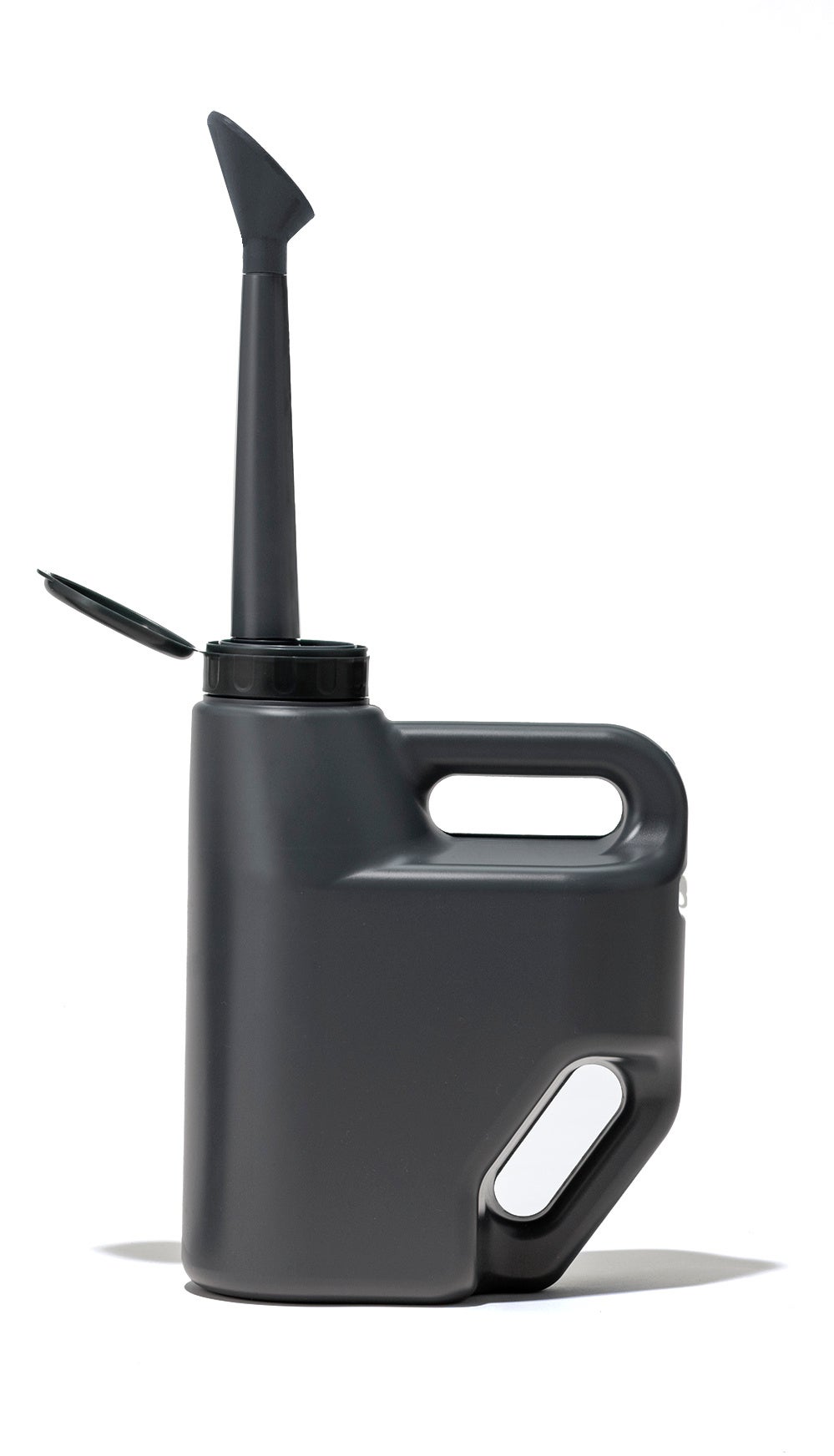 穴数を減らし、流量を制御する構造になっています。持ちやすく、手首への負担を軽減する形状で、最後まで安定した水圧を供給できます。通気口を備え、スムーズで途切れない散水を実現。液状の散布がぐんと楽になります。散粒器同様、使用後はノズルを本体に収納できるため、省スペースでの保管が可能です。一緒にお使いいただく際、散粒器と区別ができるよう、色をシックなグレーに仕上げました。