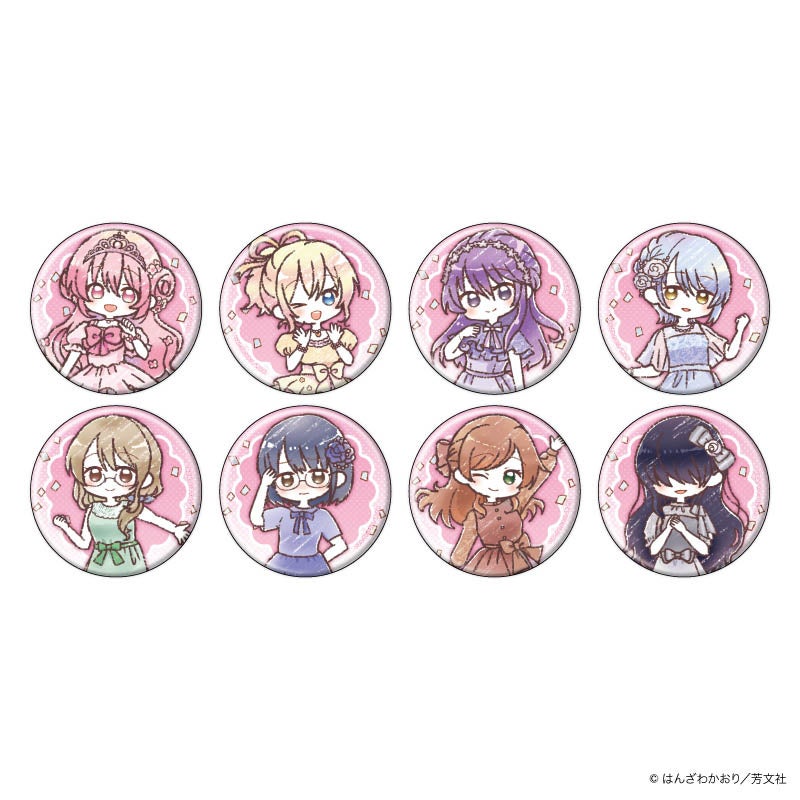 紙吹雪がキャラクターたちの周りを舞う賑やかなデザインの缶バッジを、カバンにつけたりお部屋に飾ったりすれば、テンションも最高潮に!