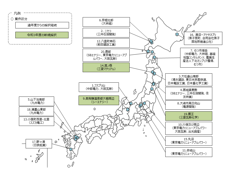 令和3年度地熱発電の資源量調査事業費助成金交付事業の採択結果について