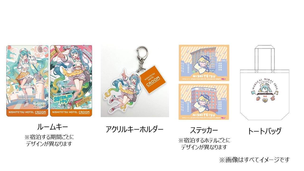 期間中は、オリジナルグッズの販売や「39TENJIN トリップ」コラボビジュアルをデザインしたラッピングバスの運行、さらには西鉄ホテルで初音ミクたちの装飾を施したコラボルームを展開するなど…天神を中心に楽しい企画が盛りだくさんです。初音ミクたちと一緒に福岡のまちを盛り上げてまいりますので、ぜひお楽しみください!