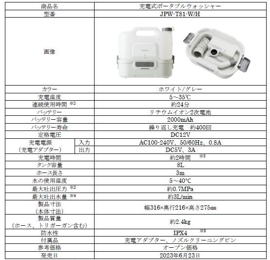※4:満充電、バッテリー初期温度:20℃ 吐出パターンがシャワーの場合。