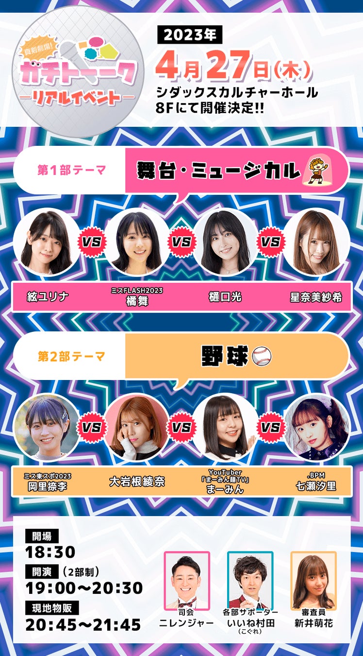 株式会社マシェバラ(本社:東京都渋谷区 URL:https://www.mache.tv/)が運営するネット配信サービス「マシェバラ」は4月27日(木)、「真剣劇場!ガチトーーク」を開催いたします。