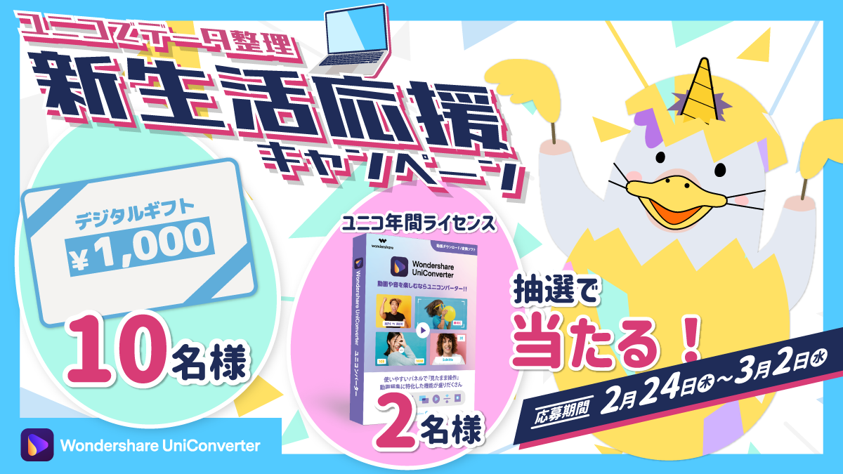 - \ Wondershare UniConverter 『ユニコでデータ整理 新生活応援キャンペーン』実施中 /