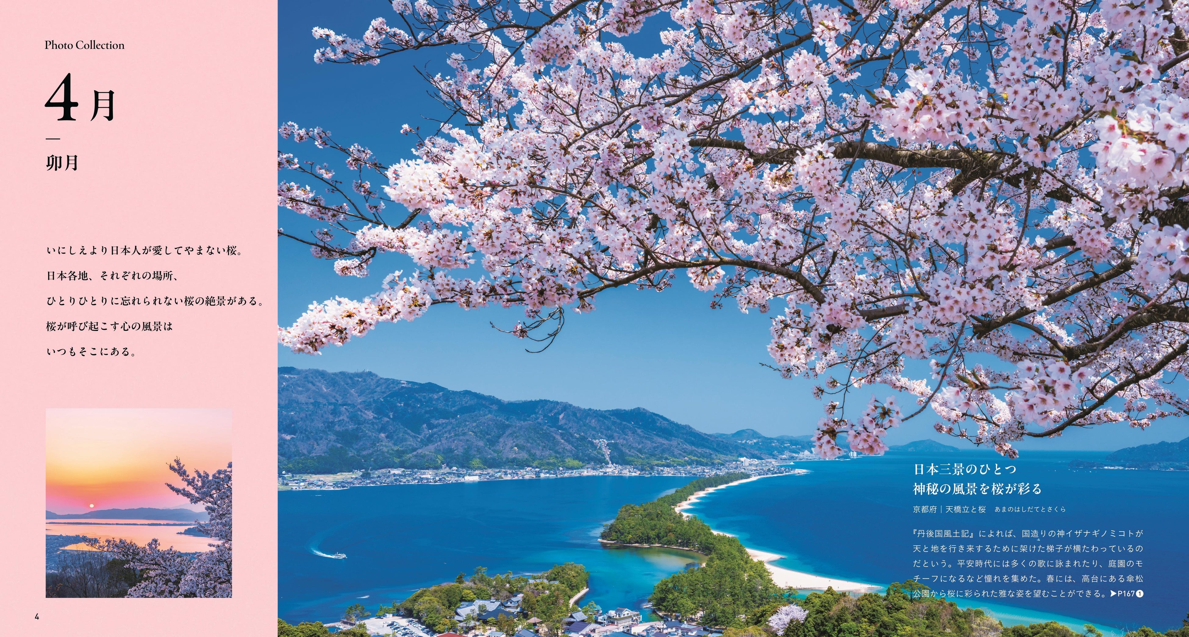 ▼1スポットを見開きの美しい写真で月ごとに紹介