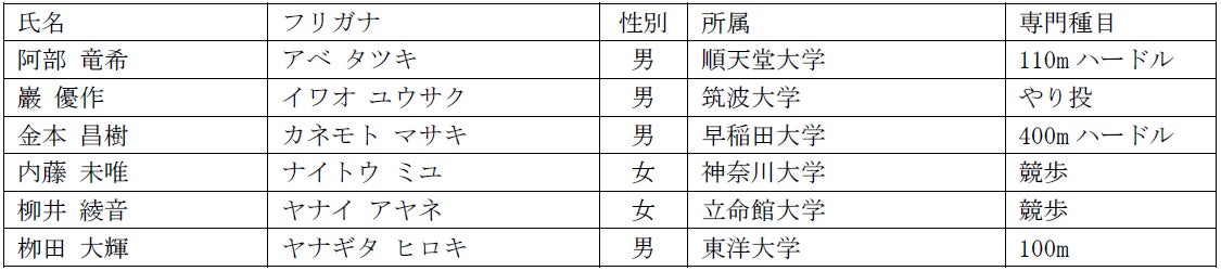 このプログラムを通じ、トップアスリートとしての競技力向上はもちろんのこと、競技以外のステージでも活躍する人材を輩出し、陸上から生まれるリーダーの方々が、これからのスポーツ界や社会をより輝くものにしていただくことを目指しており、この目的に対し賛同し、強い参加意欲のある競技者を募集いたします。