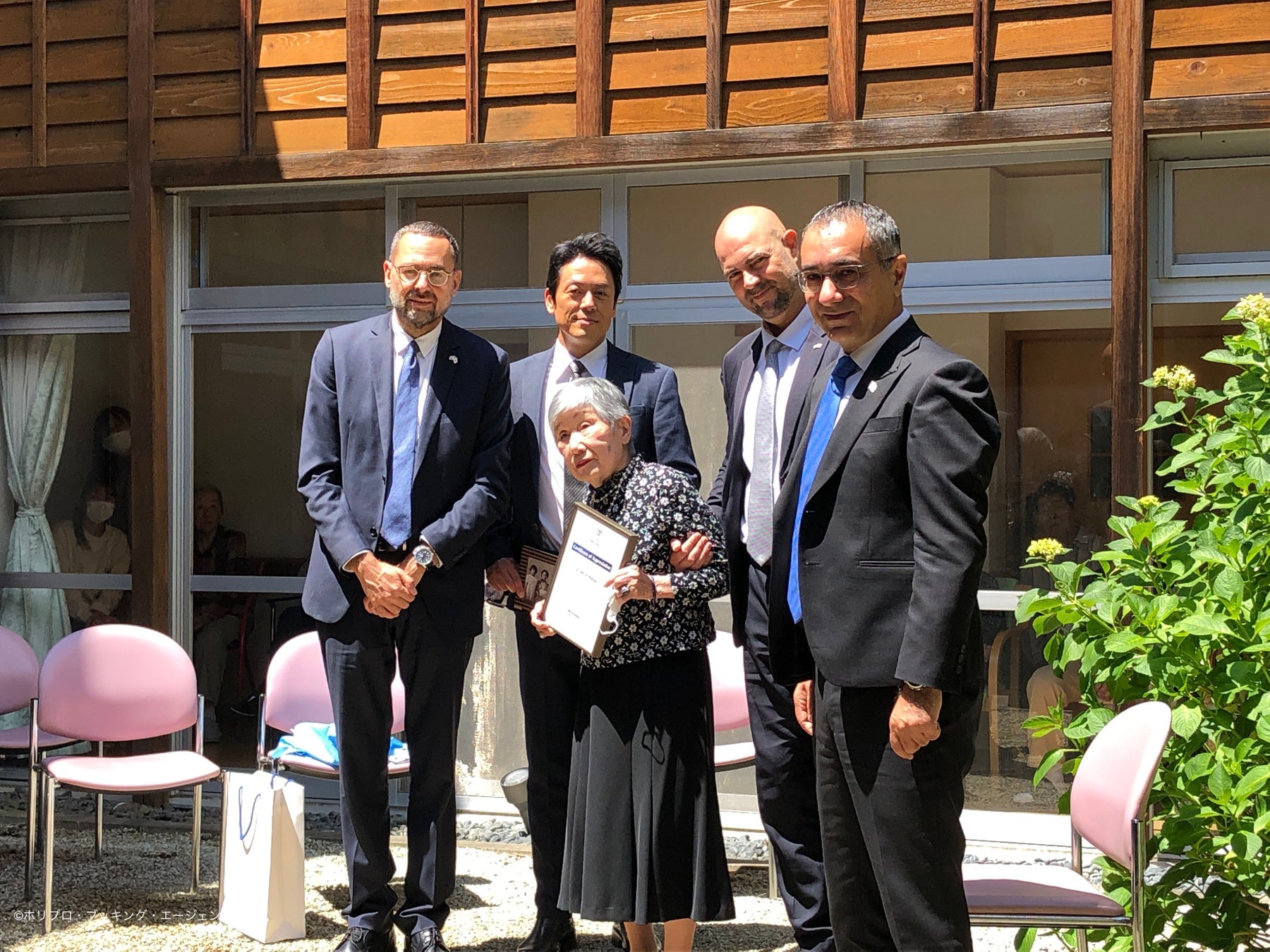 今回の贈呈式への参加者は、ツヴィ・ハウザー氏(イスラエル国会副議長・日本イスラエル友好議員連盟会長・元官房長官)、アミール・オハナ氏 (イスラエル国会議員・日本 イスラエル友好議員連盟メンバー・元公安大臣・元法務大臣)、ギラッド・コーへン駐日 イスラエル大使、ダフナ・カプランスキー氏(イスラエル国会外交調整官)。