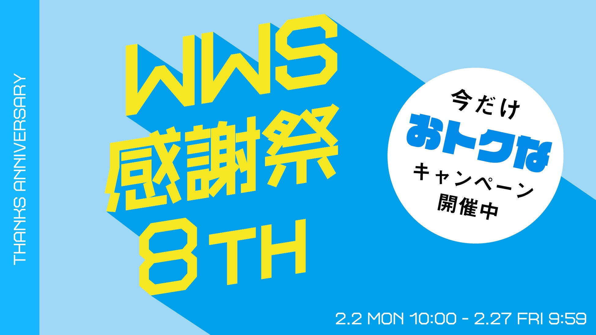 WWSは、2026年3月で発売8周年を迎えます。日頃のご愛顧に感謝を込めて、2026年2月2日(月)~2026年2月27日(金)9:59の間、WWS公式オンラインストアとWWS公式ストア6店舗にて、「WWS感謝祭」を実施いたします。
