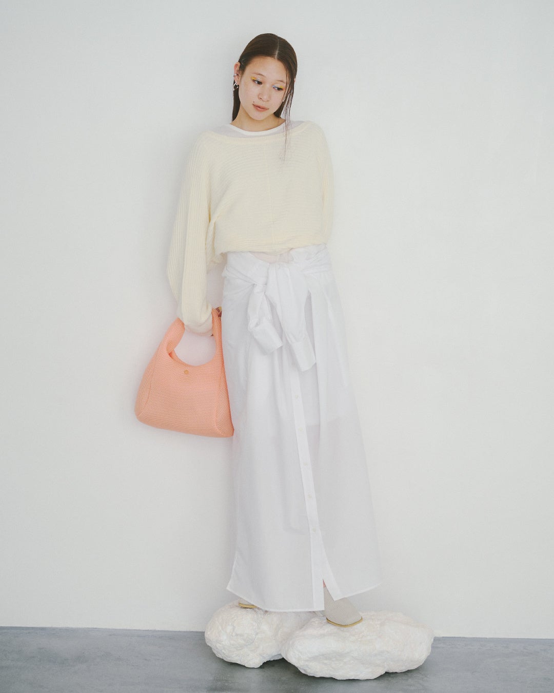 身幅ゆったり&クロップド丈&タックを入れたカーブスリーブ、とシンプルながらもシルエットにこだわりました。