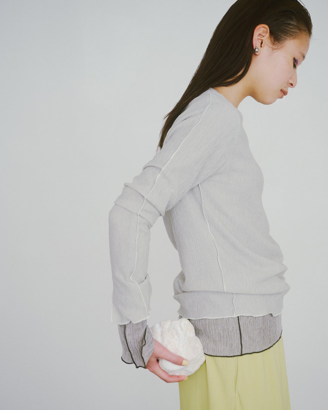 表面感があるシャーリング生地を使用したロングスリーブプルオーバー。
