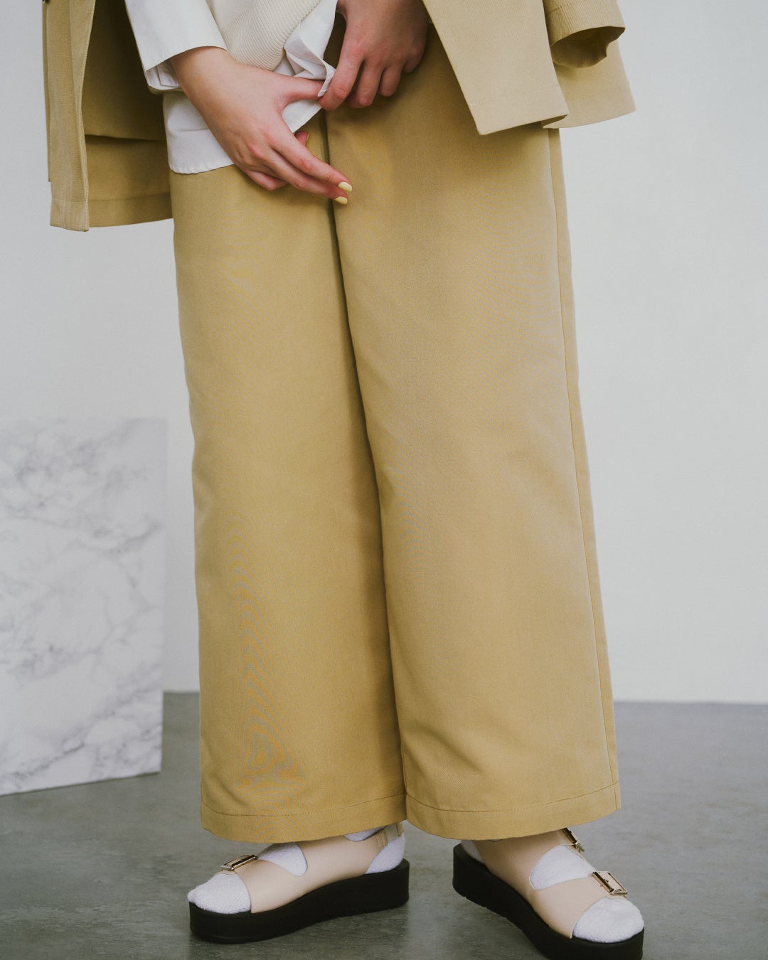 裾に向かって広がるワイドシルエットで 脚長効果を期待できつつ、後ろゴムで快適な 着心地もキープしています。