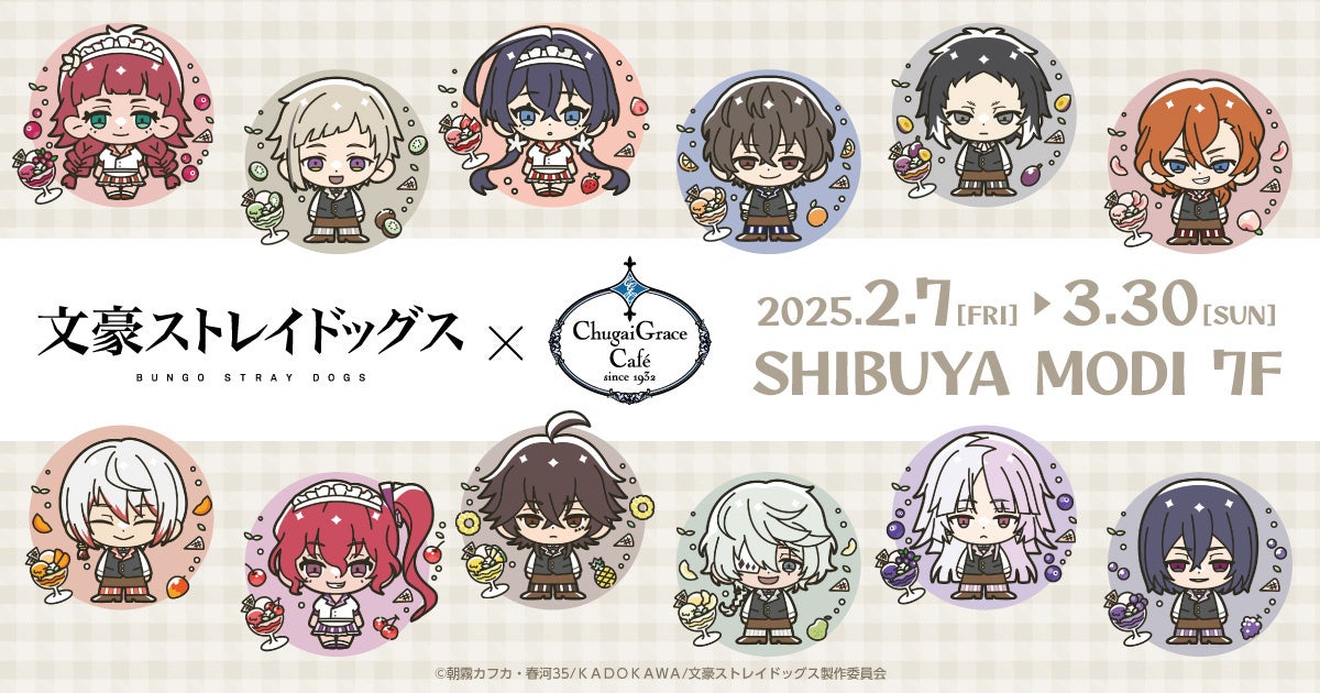キャラクターグッズの商品企画・製作・販売を行う中外鉱業株式会社コンテンツ部は、「TVアニメ『文豪ストレイドッグス』 × Chugai Grace Cafe【渋谷モディ】」コラボカフェを開催します。