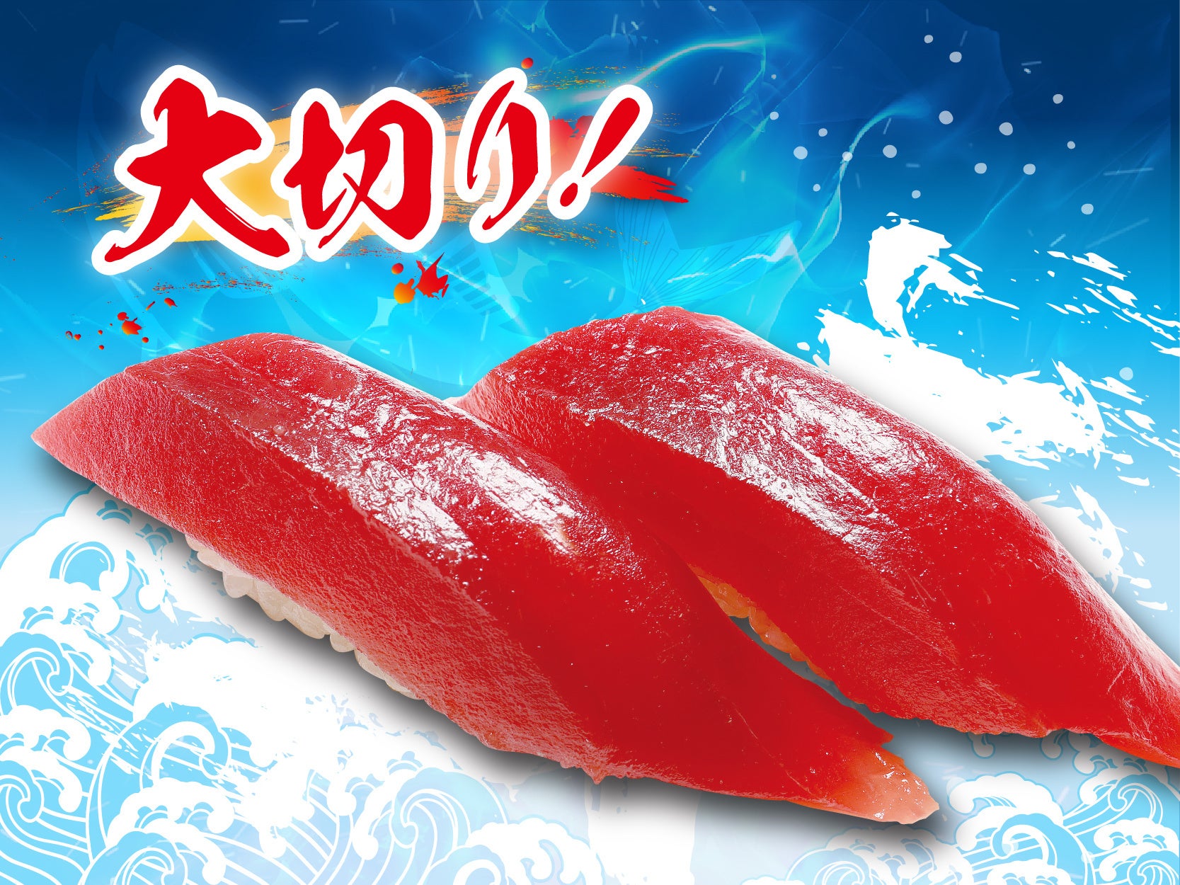 通常のまぐろ2貫でのお値段そのままに、今だけ1貫プラスの欲張りな「3貫」!