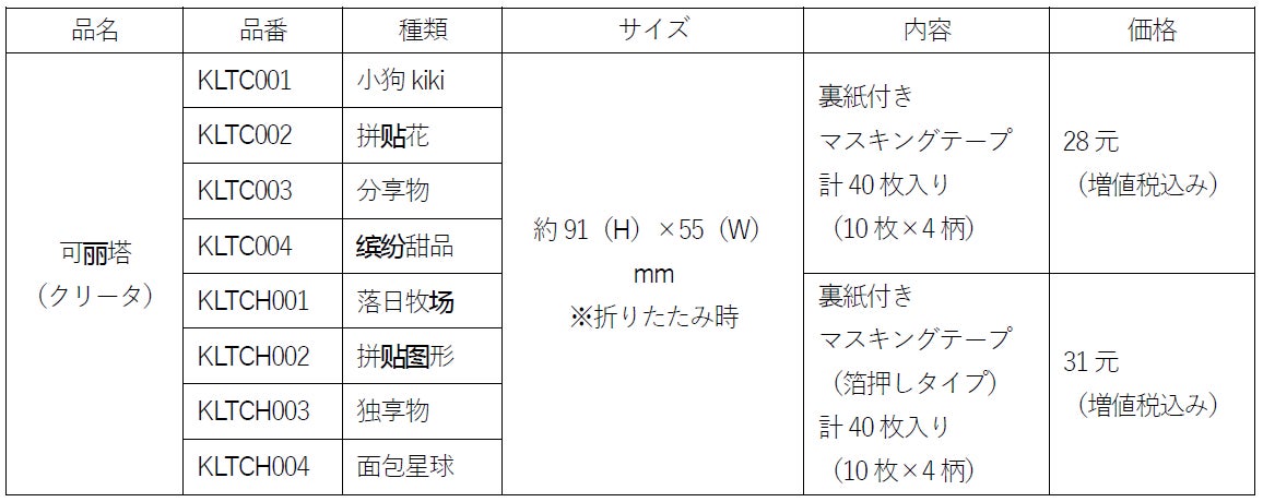 切れてるマスキングテープ「可丽塔(クリータ)」発売