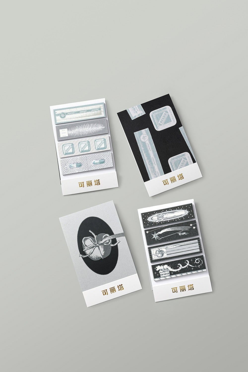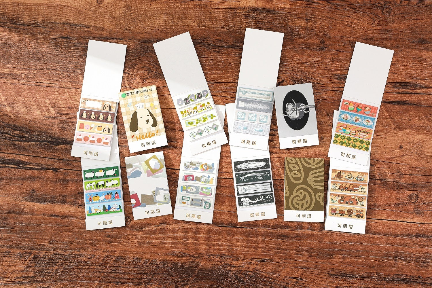 「可丽塔(クリータ)」はあらかじめ5cmの長さにカットされた裏紙付きのマスキングテープを、カードサイズの本体に複数柄まとめることでコンパクトに持ち歩けるマスキングテープです。