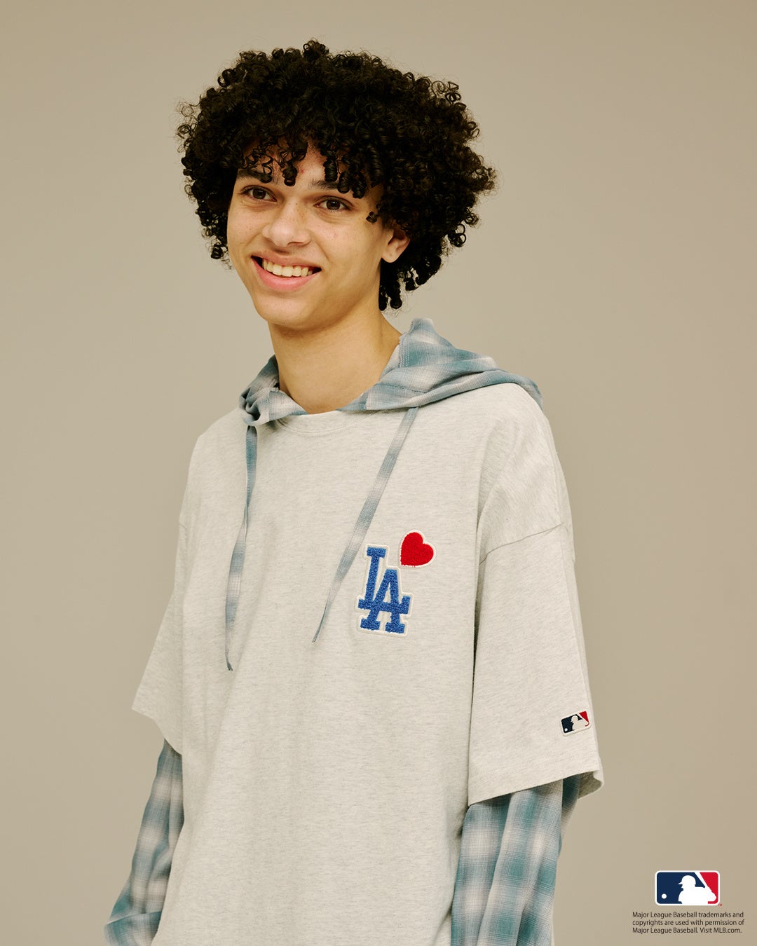 大人気のLA Dodgersをモチーフにしたデザイン。シンプルなTシャツは重ね着するのがポイント。