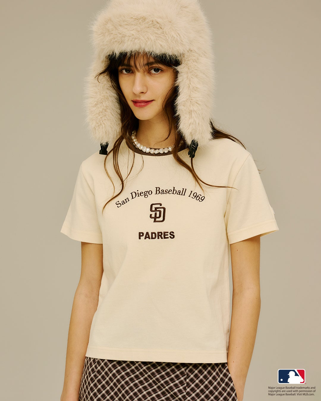 PadresをモチーフにしたTシャツ。高級感のある刺繍と、ブラウンベースなデザインが一気におしゃれ見え。