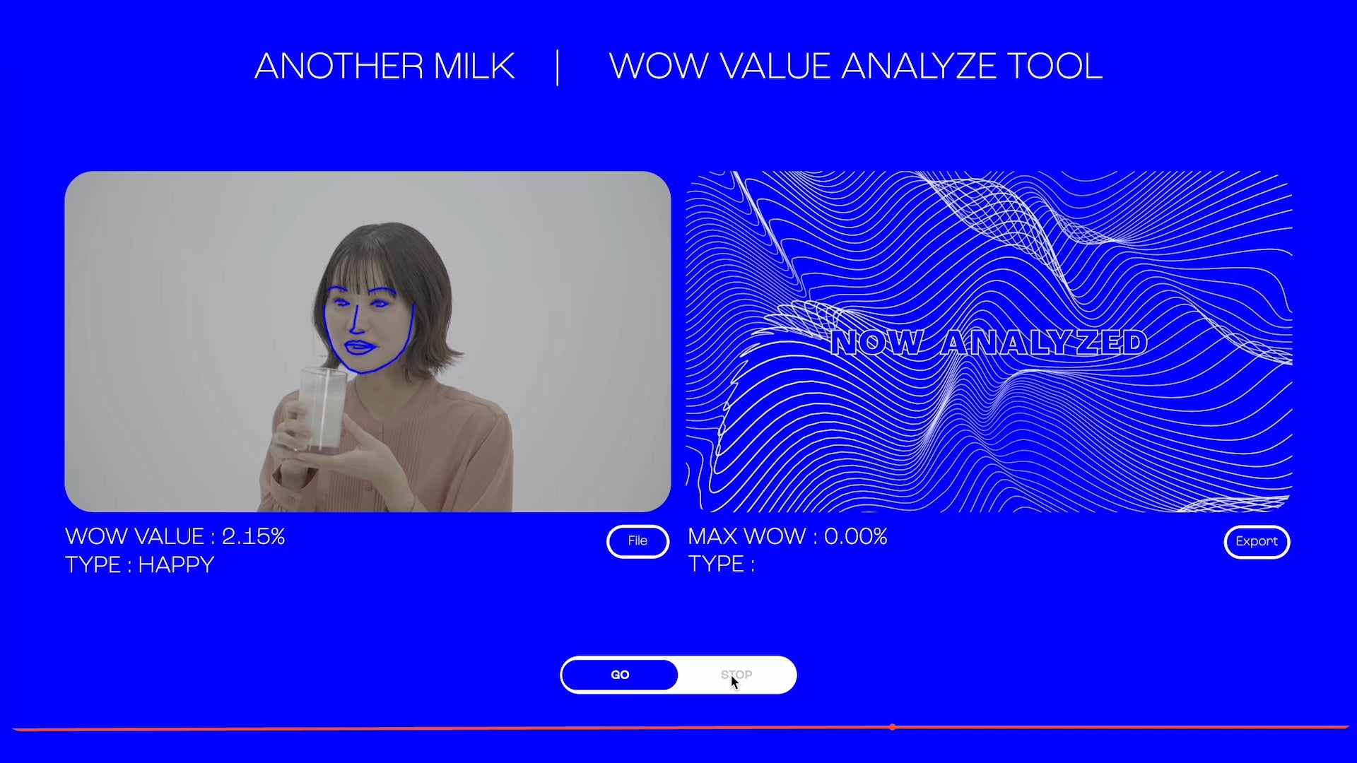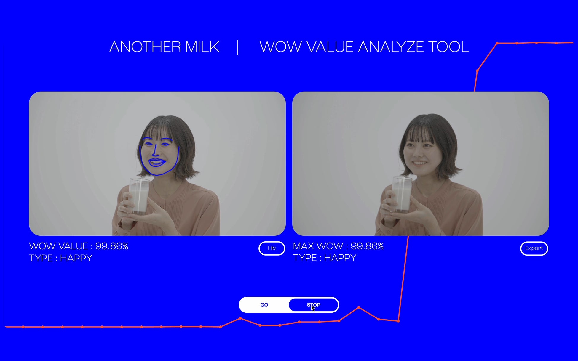 「WOW値分析ツール」は、動画に映る人物の表情を感情認識AIで分析するWebアプリケーションです。これまで、人間の驚きや嬉しさなどの感情は、表情から感覚的に感じ取ることができても、客観的な指標で測定することが難しいとされてきました。そこで、「WOW値分析ツール」は初めてパスチャライズド牛乳を飲んだときの“WOW”の度合いを客観的な指標で測定することで、言葉やアンケートだけでは表すことのできない無意識の感情を捉えることを目的に開発しました。