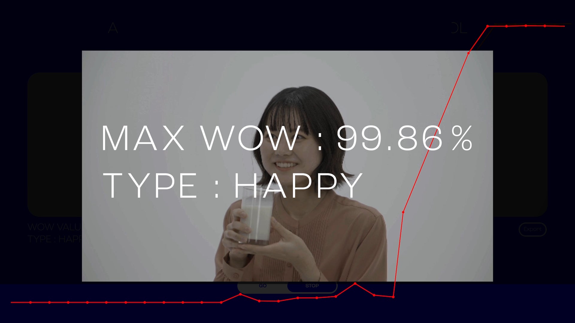 動画では、アンケート調査や感想のみでは捉えることのできない表情の微細な変化を、最新技術の感情認識AIで分析し「WOW値※2」として計測しました。