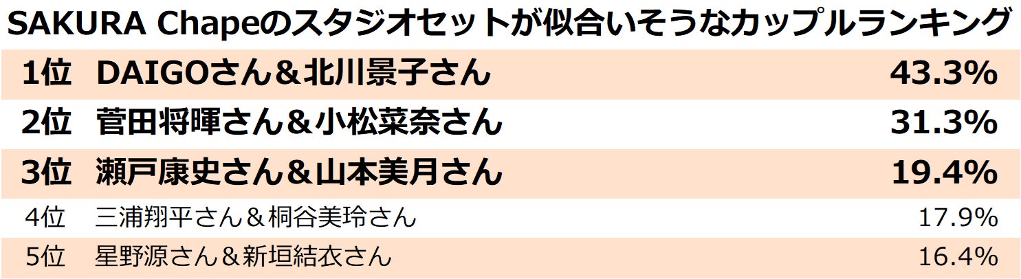 続いて幻想的なSAKURA Chapelのスタジオセットが似合うと思う芸能人カップルのランキングです。