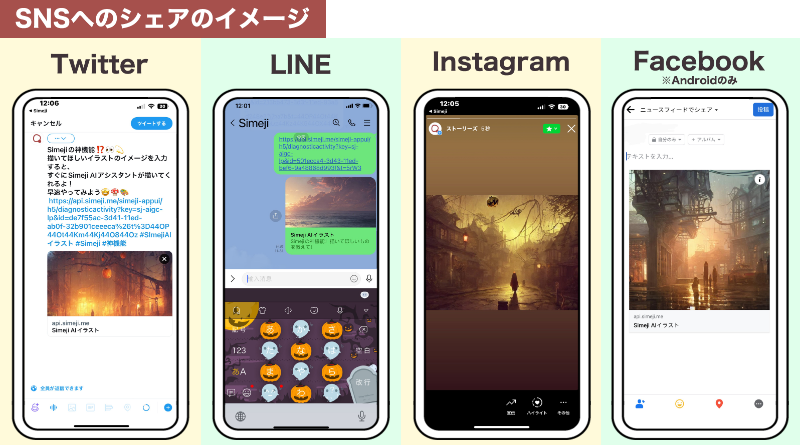 ※自動生成したイラストは、SNSに共有後、確認・保存することが可能です。