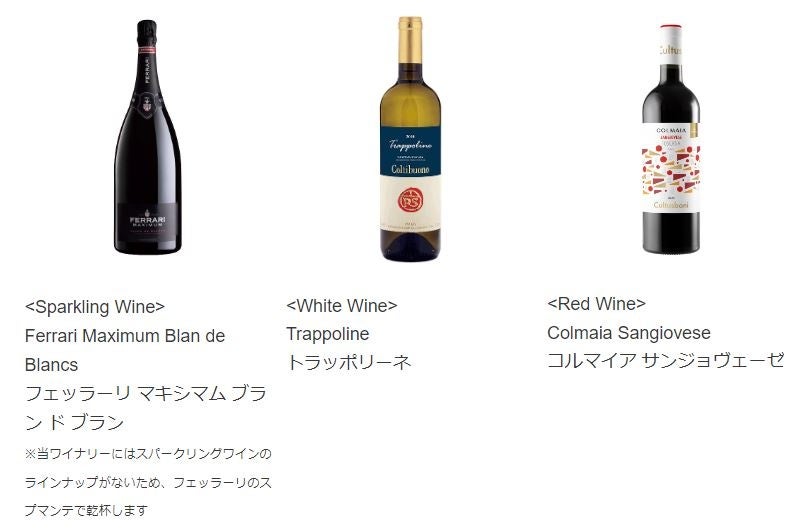ワイナリーの最高責任者をお招きし、バディア・ア・コルティブオーノについての魅力を語っていただきます。そして、当ワイナリーのワイン5種類と乾杯スプマンテ、各ワインに合わせたオービカのフルコース料理とのアッビナメント(ペアリング)を、共に楽しんでいただきます。