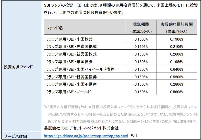 このたびサービス提供開始から約11ヵ月で残高300億円を達成することができたのは、低コスト(投資一任手数料は年率0.66%、「SBIラップ×SBI新生銀行」の場合は年率1.21%)で全自動の資産運用を行える点を評価いただいたものと考えています。2022年10月20日(木)からは対面チャネル向けに「SBIラップ×SBI新生銀行」を開始し、お客さまのニーズに寄り添ったコンサルティングと最先端の運用ノウハウを活かし、「リアル」と「デジタル」を組み合わせた投資一任サービスを提供することで、より幅広いお客さまの資産形成を積極的に支援しています。