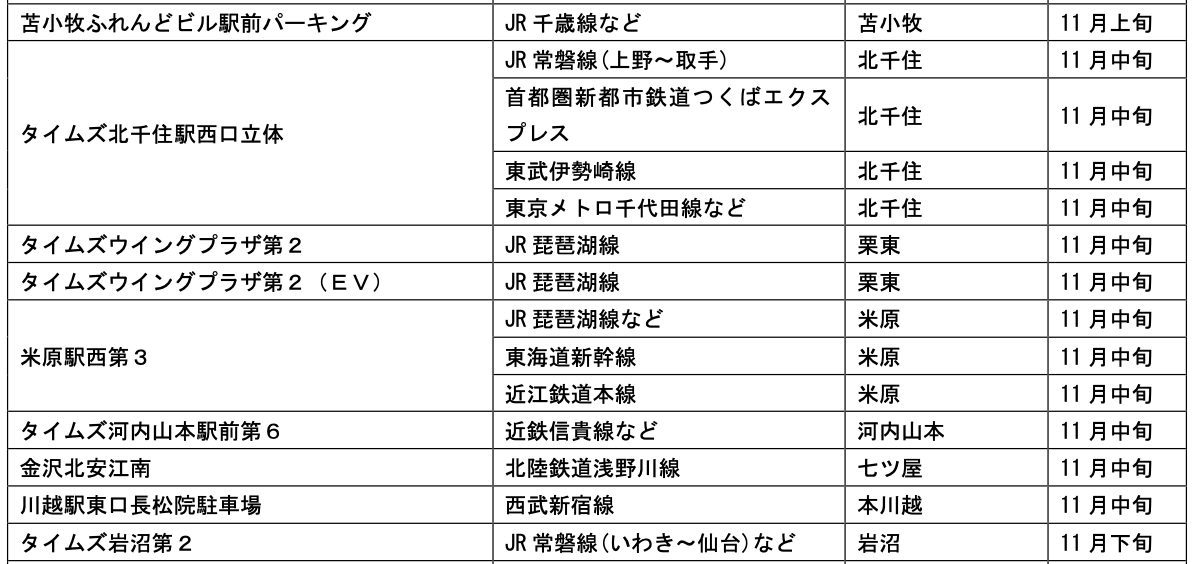 【サステナビリティアクション】パーク&ライドが可能なタイムズパーキングレール&カーシェアが可能なタイムズカーステーション 11月のオープン情報
