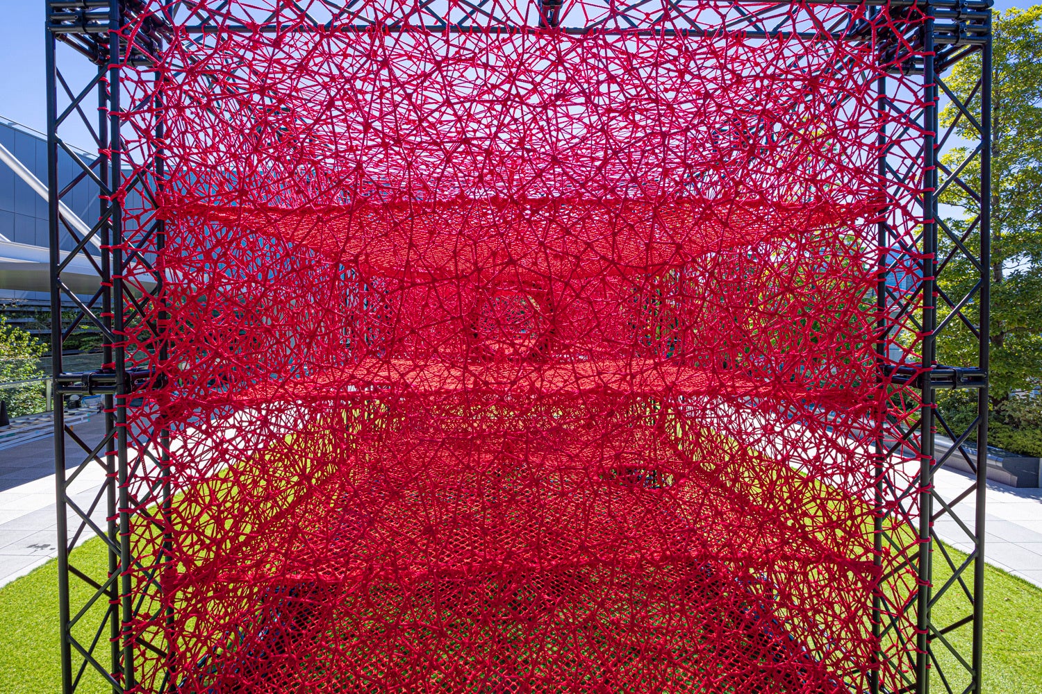 GINZA SIXガーデンに、海外にも多くのファンを持つHajime Kinoko氏による体験型インスタレーションが登場します。作品名は『ENISHI』。赤いロープで作られたアスレチックジムのようなインスタレーションは、お子様に限り、中に入って遊ぶことができます。