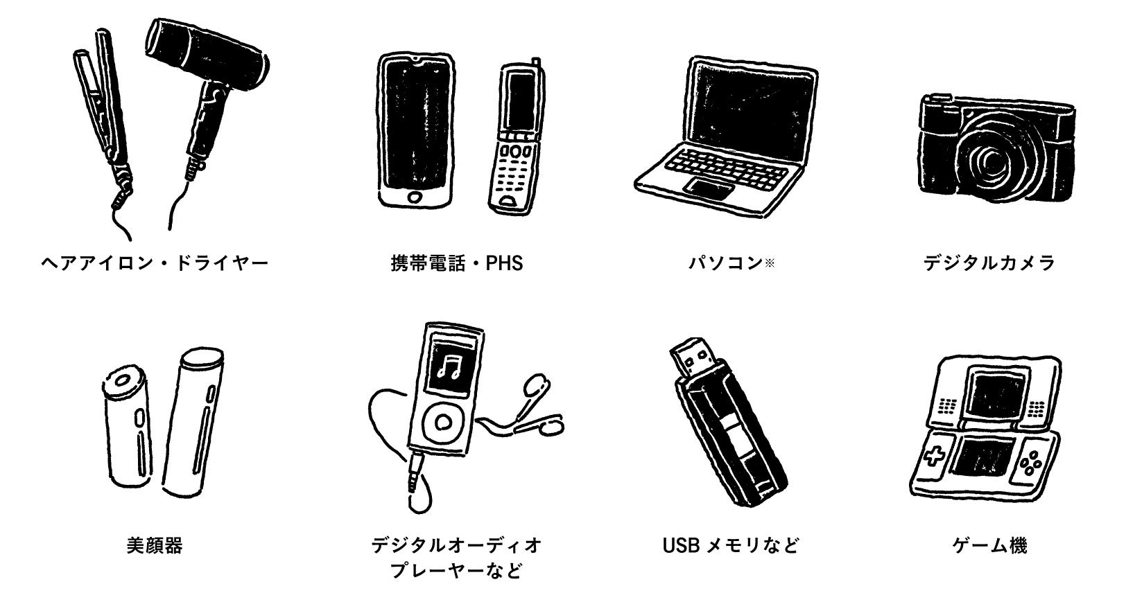 ・電子辞書 ・電卓 ・電子血圧計 ・電子体温計 ・ヘアドライヤー