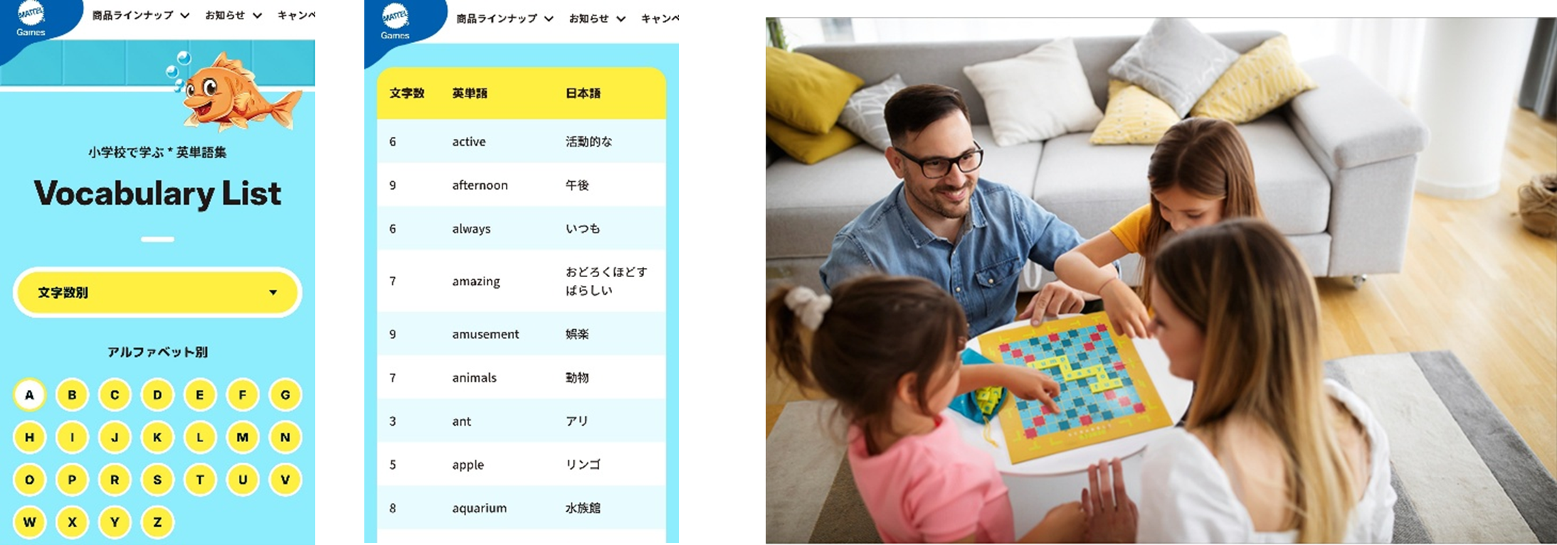 英単語集:https://mattel.co.jp/toys/mattel_games/scrabble_junior/list/