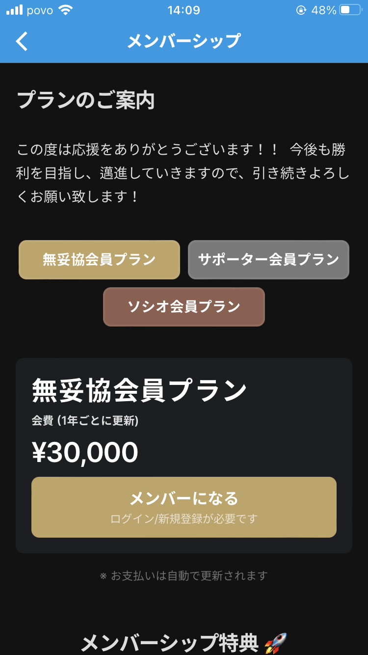 メンバーシップ機能からファンクラブ会員になって頂くと、チームから特別なグッズをお届けします!