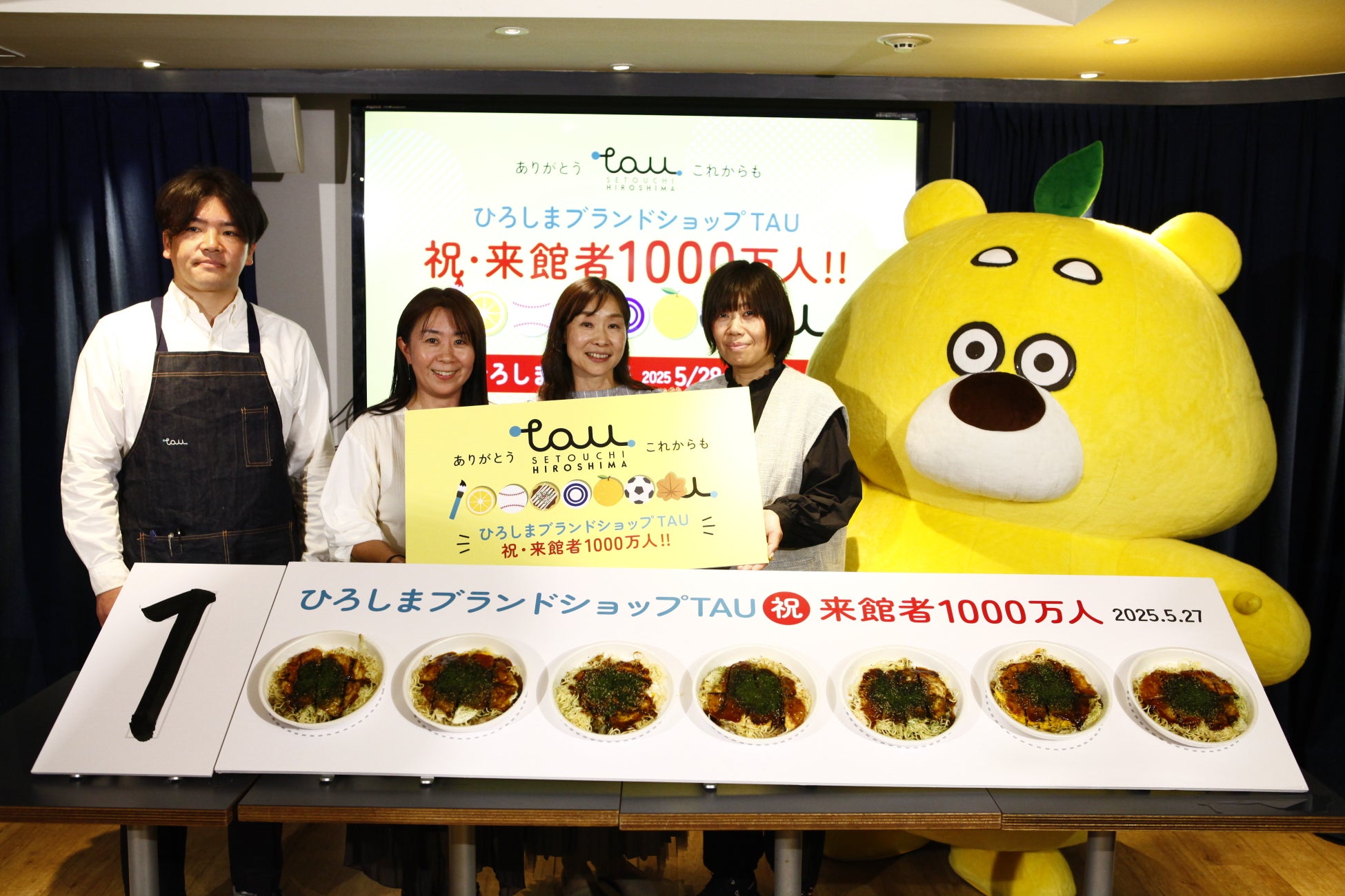 ひろしまブランドの発信拠点「ひろしまブランドショップ TAU」(東京都中央区銀座1-6-10、以下TAU)は、2012年7月にオープンして以来、たくさんのお客様にご来館いただき、5月27日に、累計の来館者数が1000万人に達しました。これを記念して、同日、セレモニーを開催いたしました。