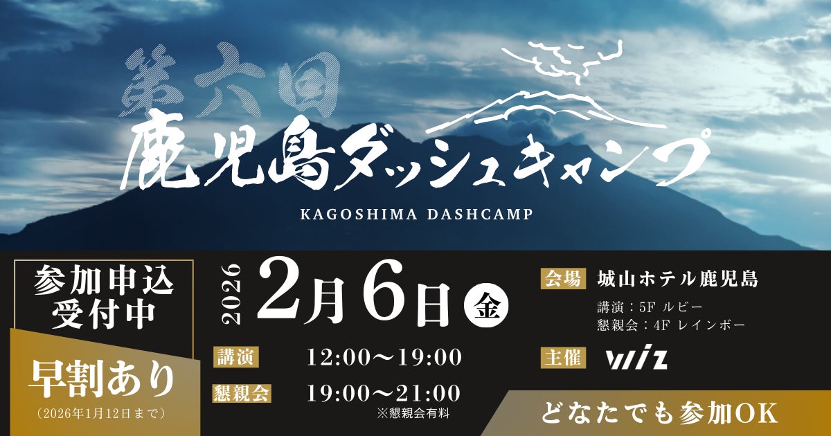 2026年2月6日(金)、株式会社Wiz(本社:東京都豊島区、代表取締役社長:山﨑 俊、以下「Wiz」)は、地域活性化とビジネスチャンスの創出を目指す鹿児島最大級のビジネスカンファレンス「第6回 鹿児島ダッシュキャンプ」を開催いたします。