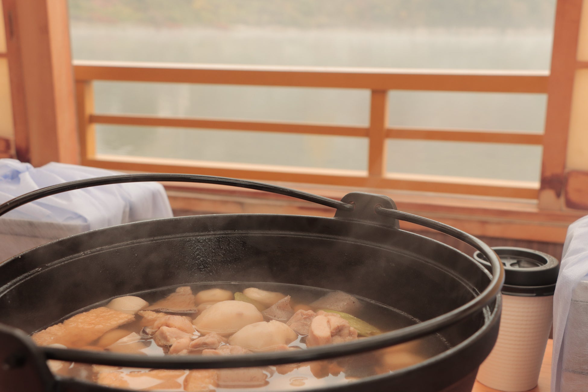 第1弾である「こたつ舟遊覧朝食」は、霧に包まれた静寂の肱川(ひじかわ)を舟で渡り、凛とした冷気の中で暖を取りながら、熱々の郷土料理「いもたき」を味わう贅沢な体験です。水墨画のような幽玄の世界で、心身を温め整える特別な朝のひとときをお届けします。