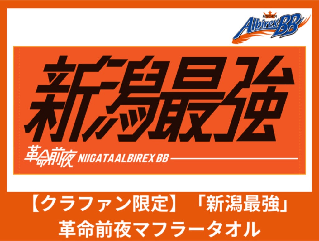 アリーナの客席から、コートで戦う選手たちへ最大の熱量を届けるための必須アイテムが登場です。中央に力強く配置された「新潟最強」の文字は、古豪復活への不退転の決意と、新潟アルビレックスBBが本来あるべき姿を象徴しています。