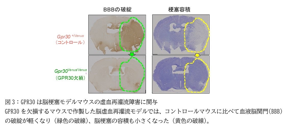 GPR30が脳微小血管に発現し、血流の回復を制御して虚血再灌流障害に関与することを解明