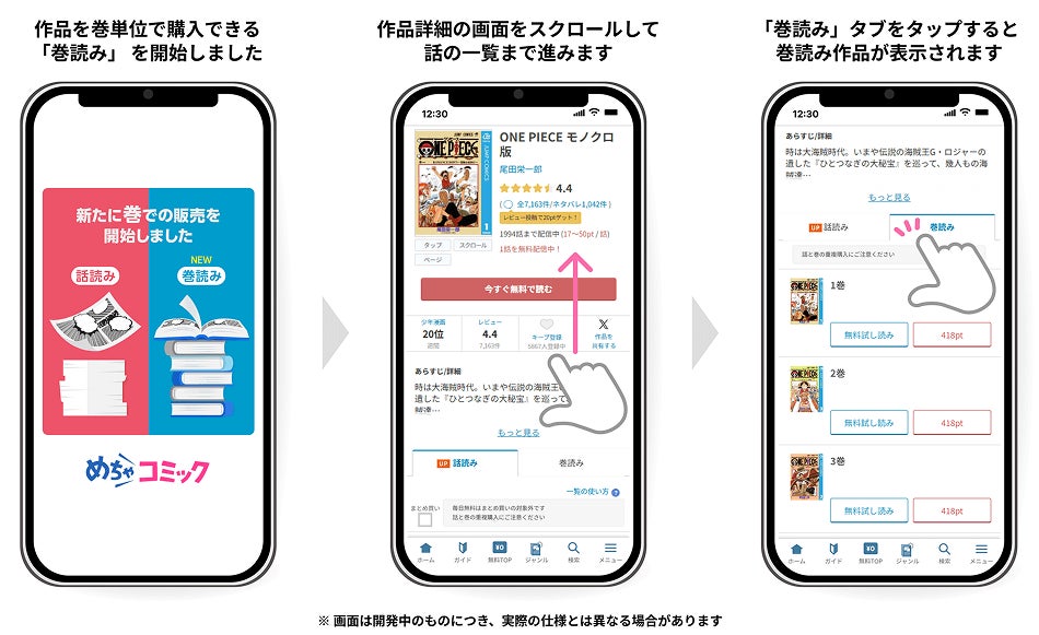 本機能の提供開始に合わせ、15万冊以上が「巻読み」対応作品としてラインナップに加わります。