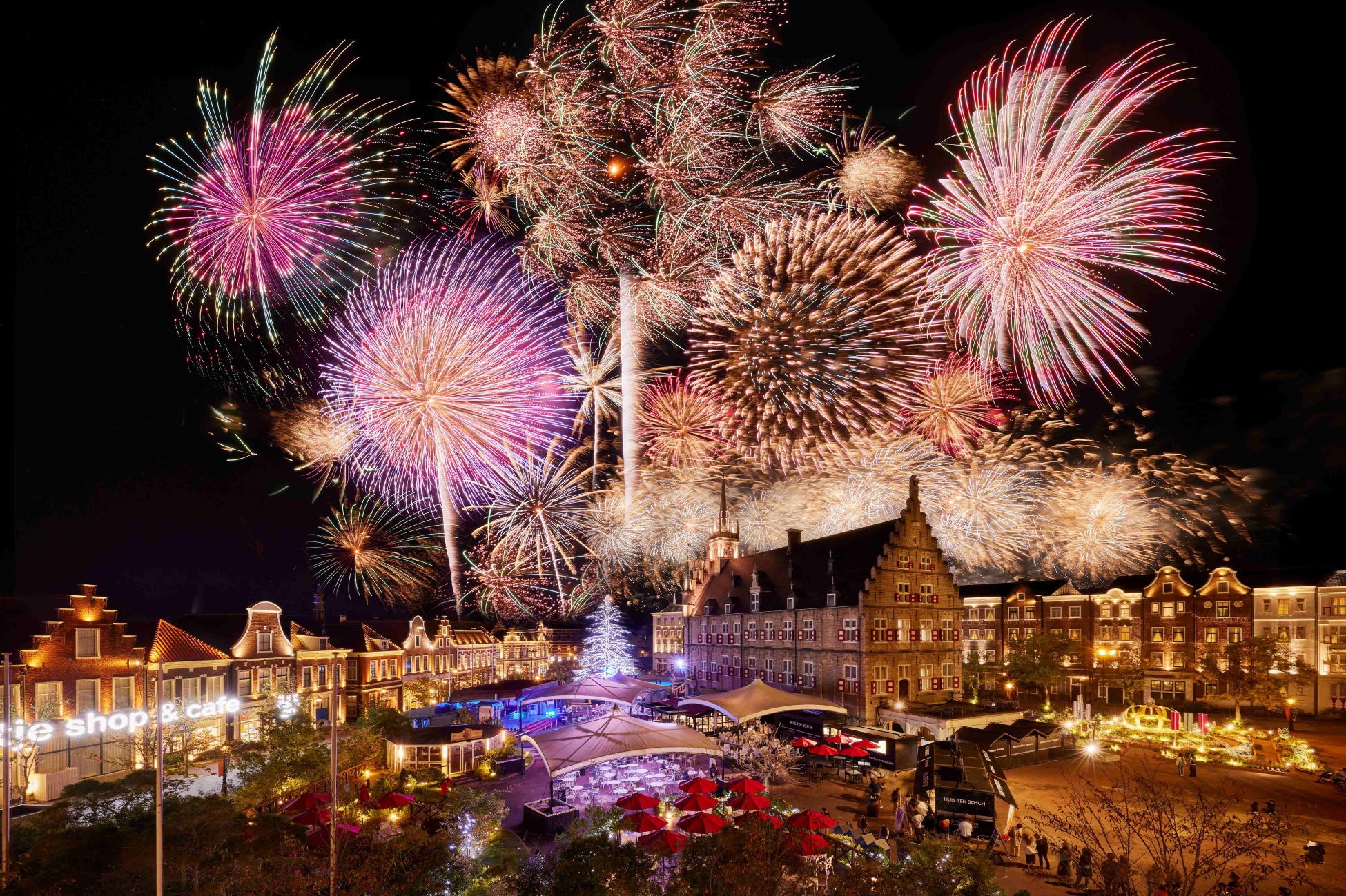 初冬のヨーロッパの街並みに西日本最大級22,000発の花火が夜空に咲き誇る、この日だけの絶景を大切な人とごゆっくりお楽しみください。