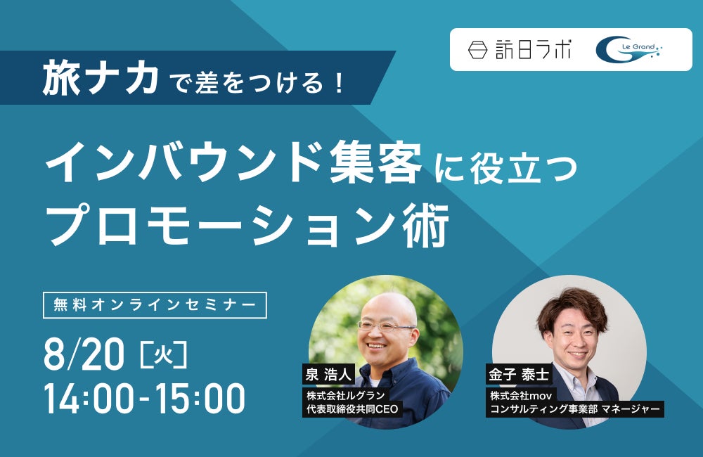インバウンド集客に役立つプロモーション術をお届けするセミナーが8月20日(火)に開催決定!