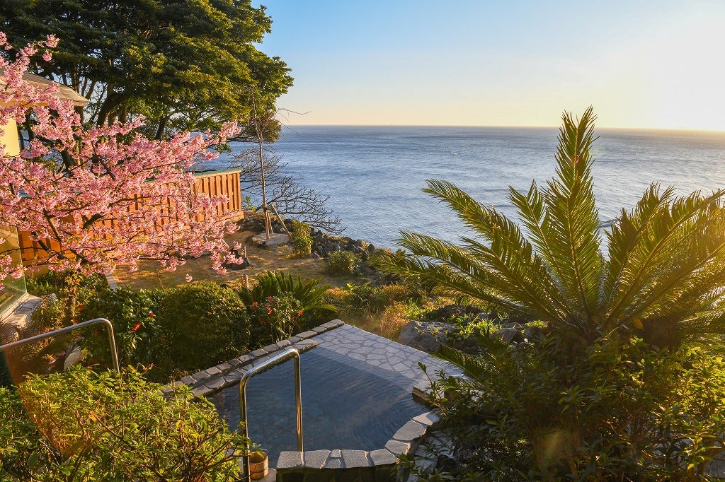 相模湾に昇る朝日や月、星空とともに、湯船に浮かぶピンク色の夜桜を眺めながら、お花見温泉をご堪能ください。