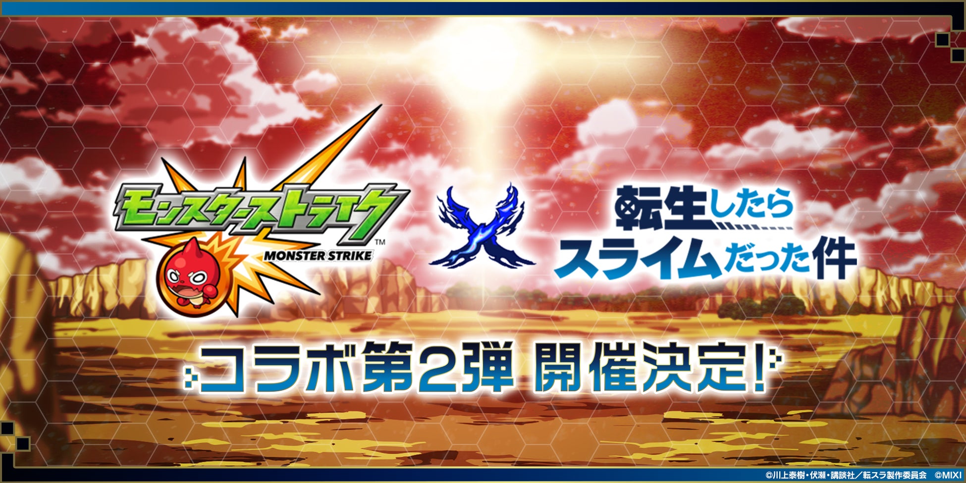 株式会社MIXI(東京都渋谷区、代表取締役社長 上級執行役員 CEO:木村 弘毅)は、スマホアプリのひっぱりハンティングRPG「モンスターストライク」(以下モンスト)において、アニメ「転生したらスライムだった件」とのコラボ第2弾を本年2月15日(土)12:00より開催します。