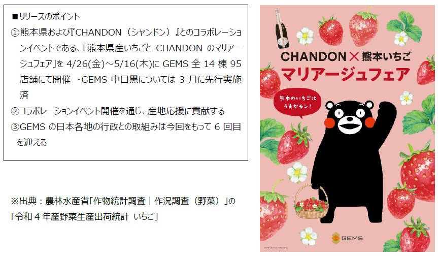 都市型商業施設「GEMS」・熊本県・『CHANDON』とのコラボレーション「熊本県産いちごとCHANDONのマリアージュフェア」 4/26(金)よりGEMS14棟・95店舗にて開催