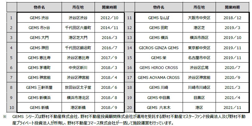 ※GEMS中目黒は3月8日~3月28日まで先行実施済