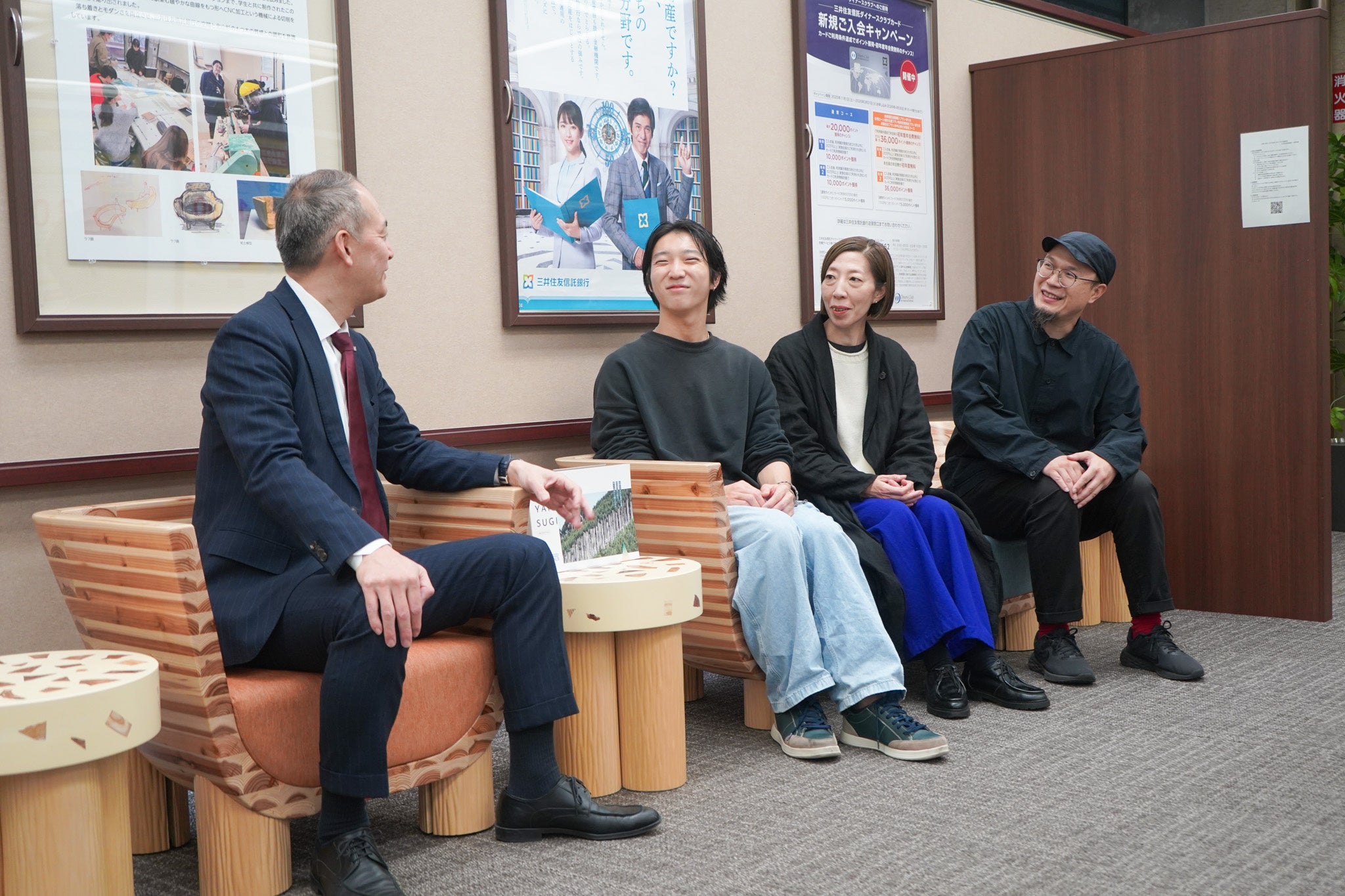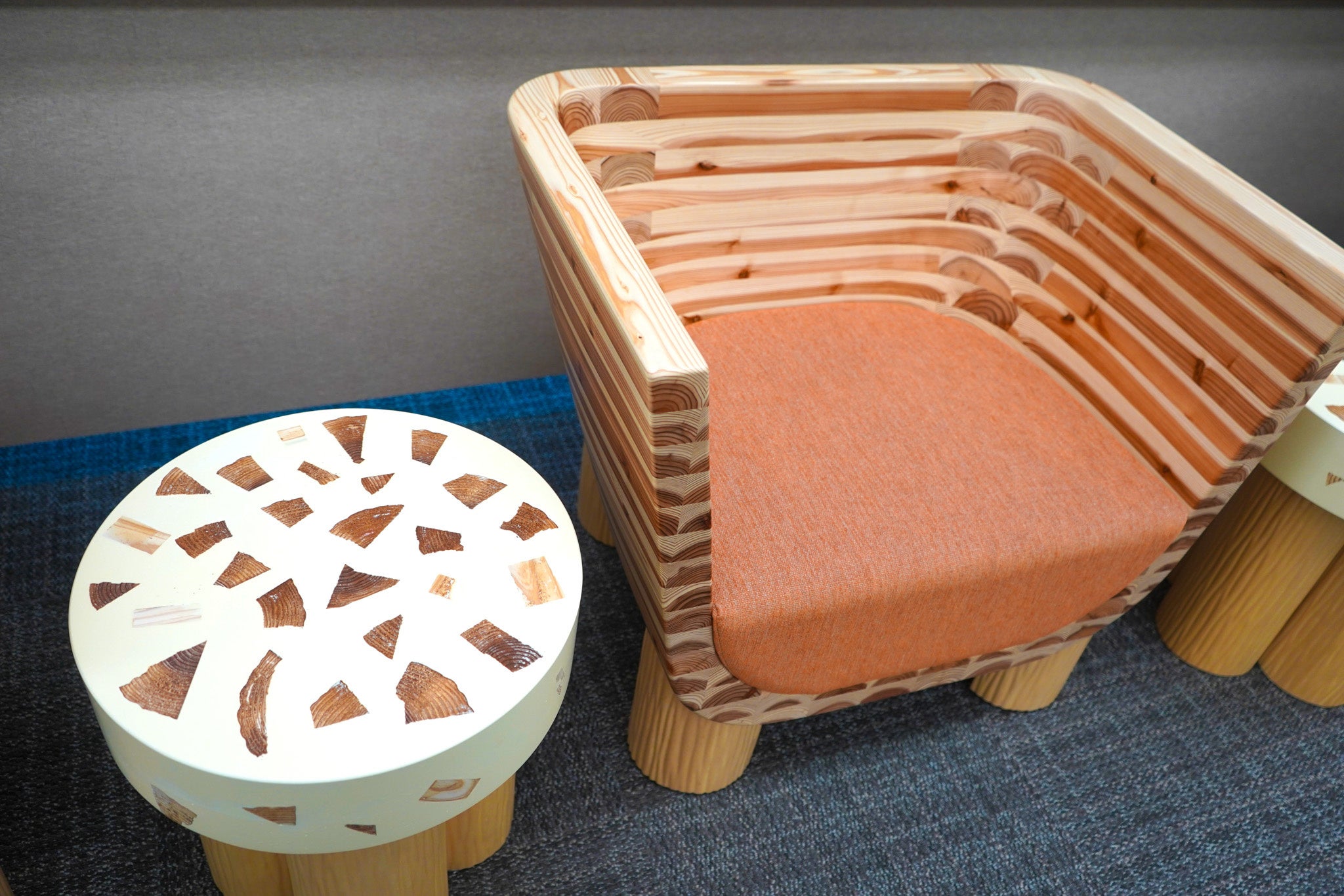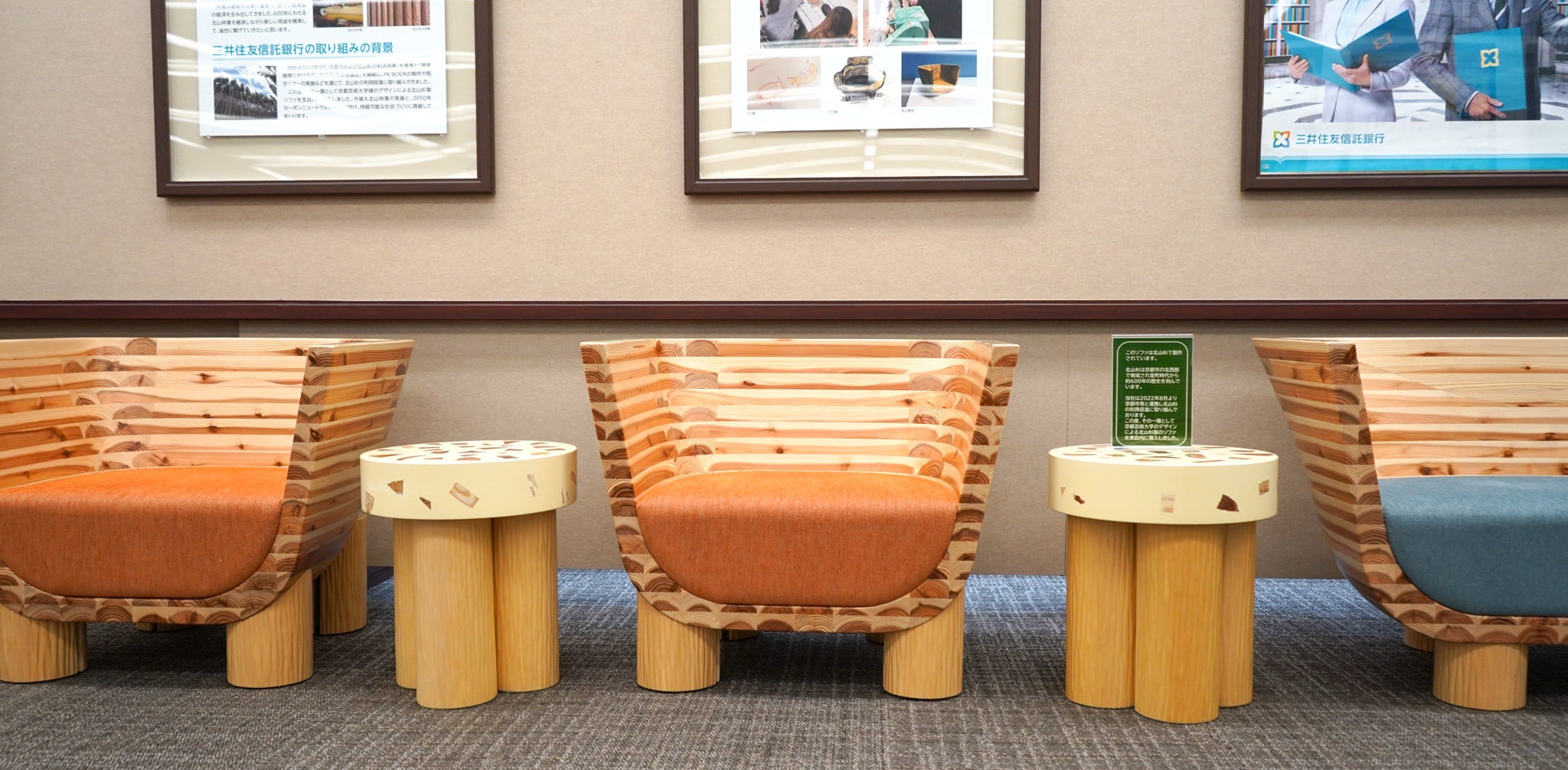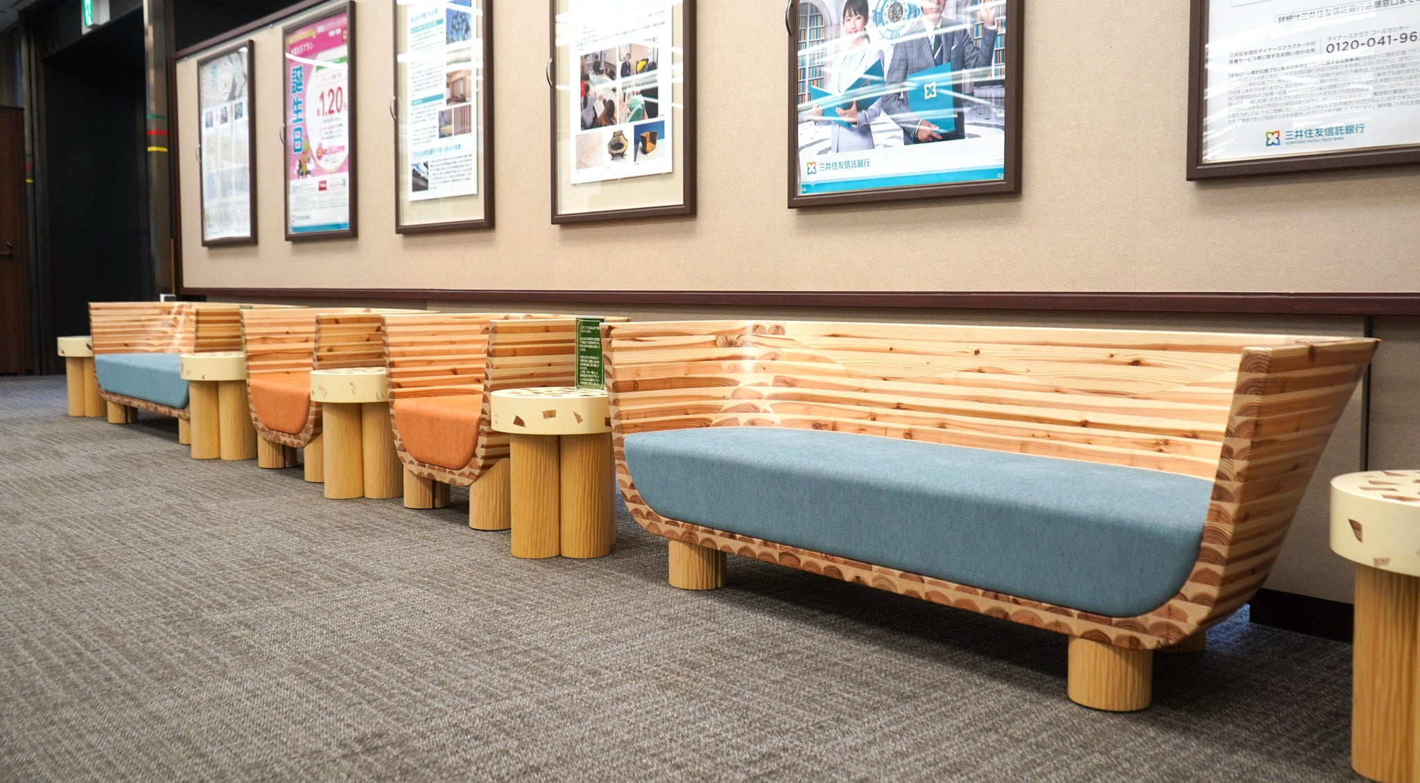 【三井住友信託銀行 × 京都芸術大学】産学連携プロダクト 芸大生が“北山杉”のソファなどを製作、銀行ロビーに心休まる“木の温もり”を