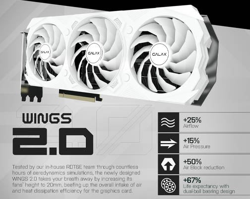 開発チームが数多くの空力シミュレーションを行い、新たに設計され、エアフローや空気圧の向上、エアブロックの削除など様々な効果を高めたオリジナル空冷ファン「WINGS 2.0」を搭載。